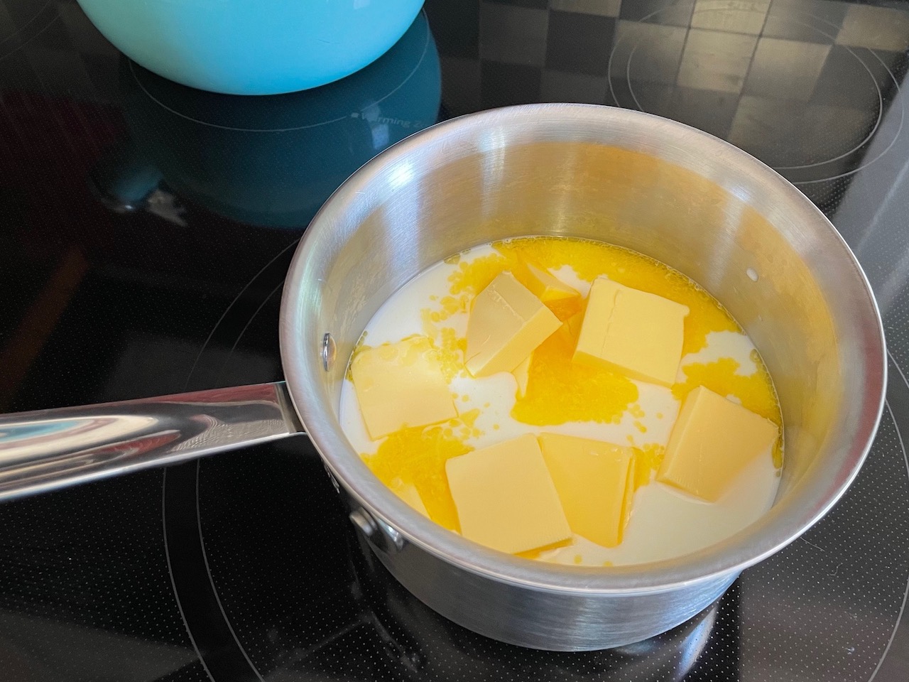 2. Heat the milk and butter together in a small saucepan over low heat until the butter is melted and the milk is steaming. Don’t allow to boil!